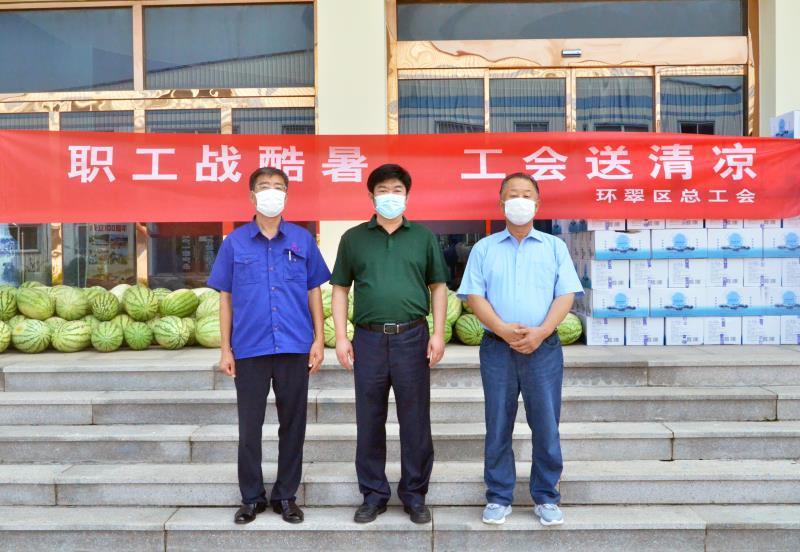 811日上午,環翠區總工會黨組書記、主席鄒杰來到宇王集團,為炎炎烈日下仍堅守崗位的工作人員送去防暑降溫慰問品和貼心的關懷。